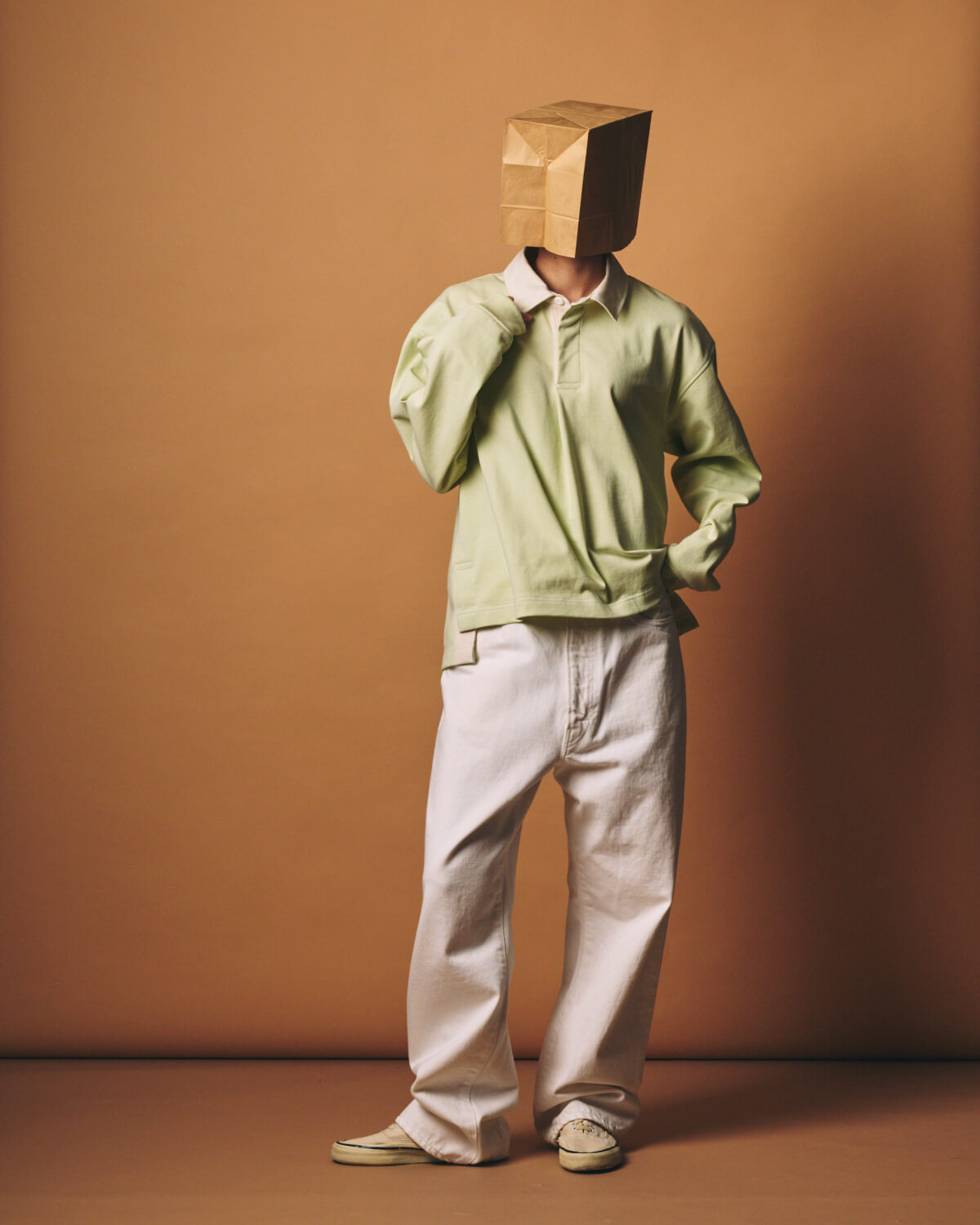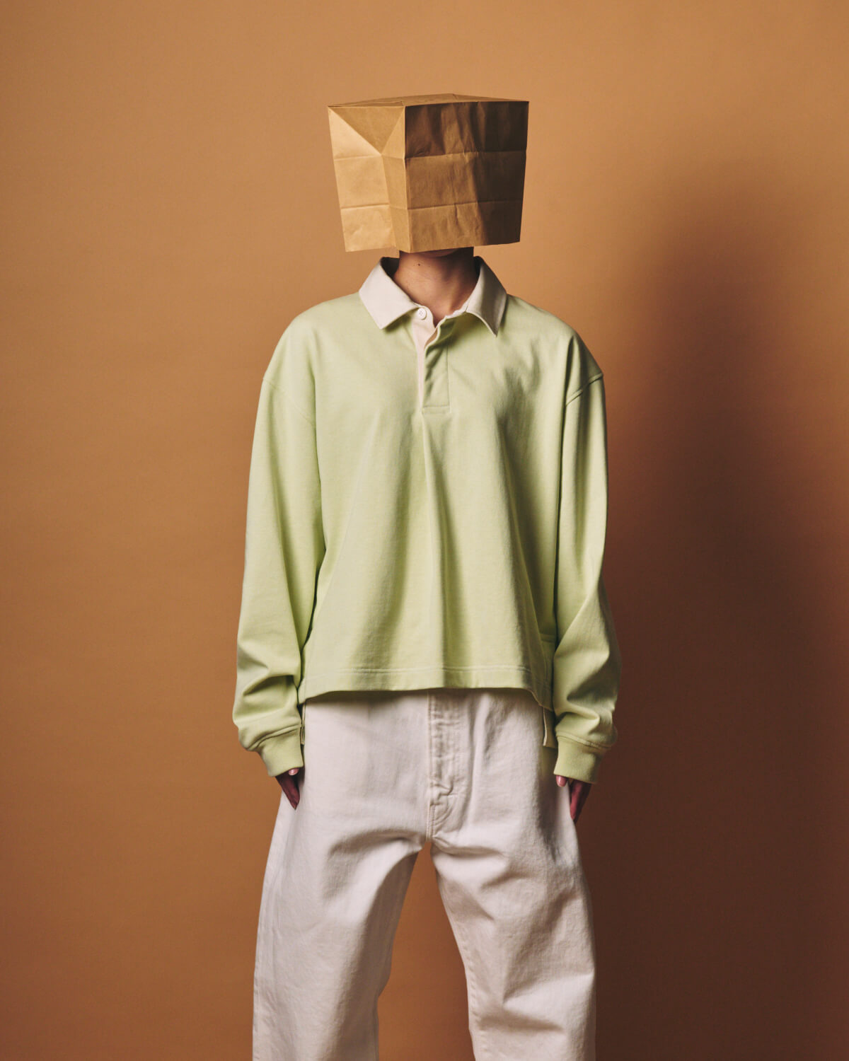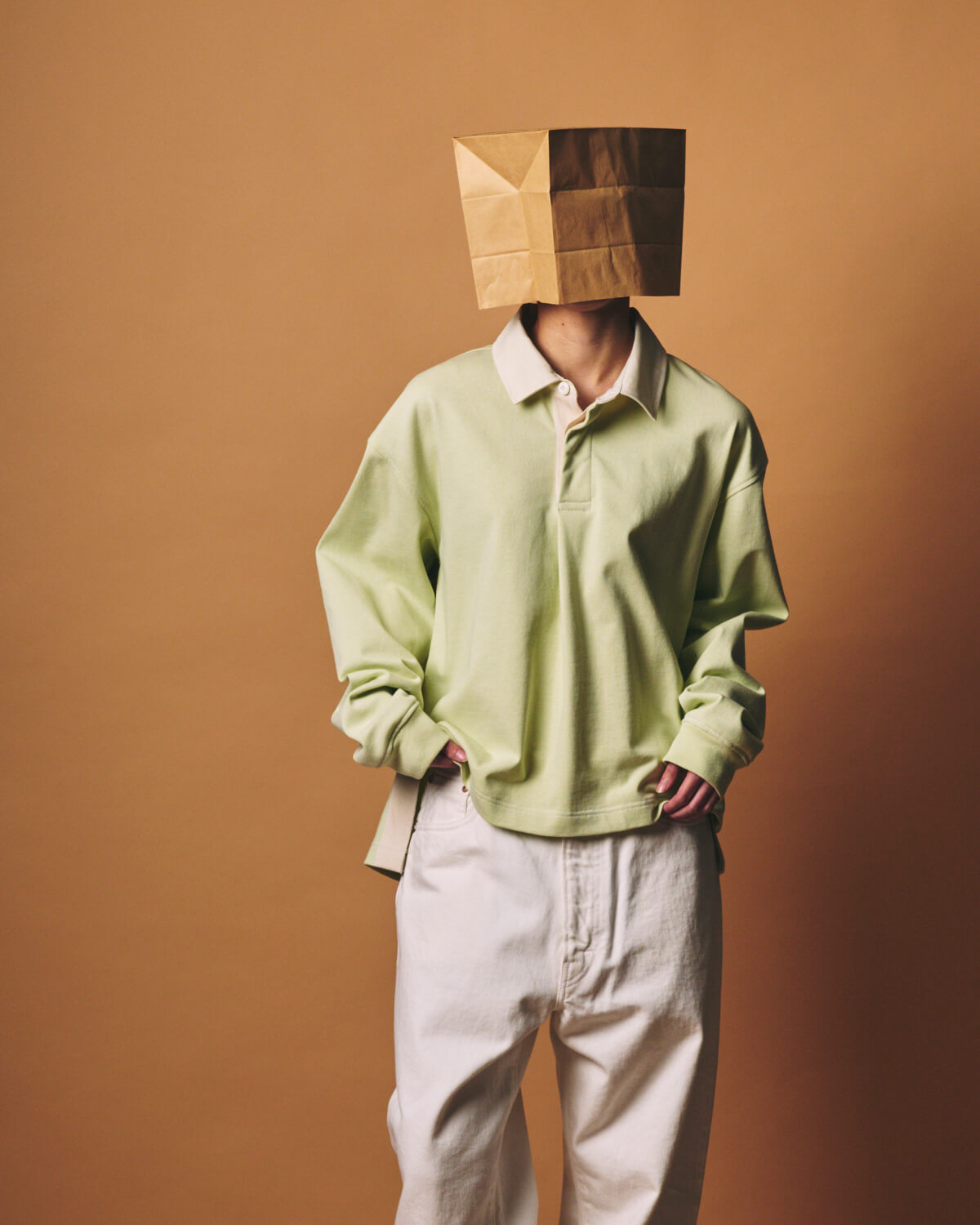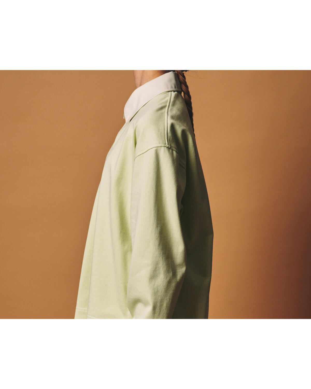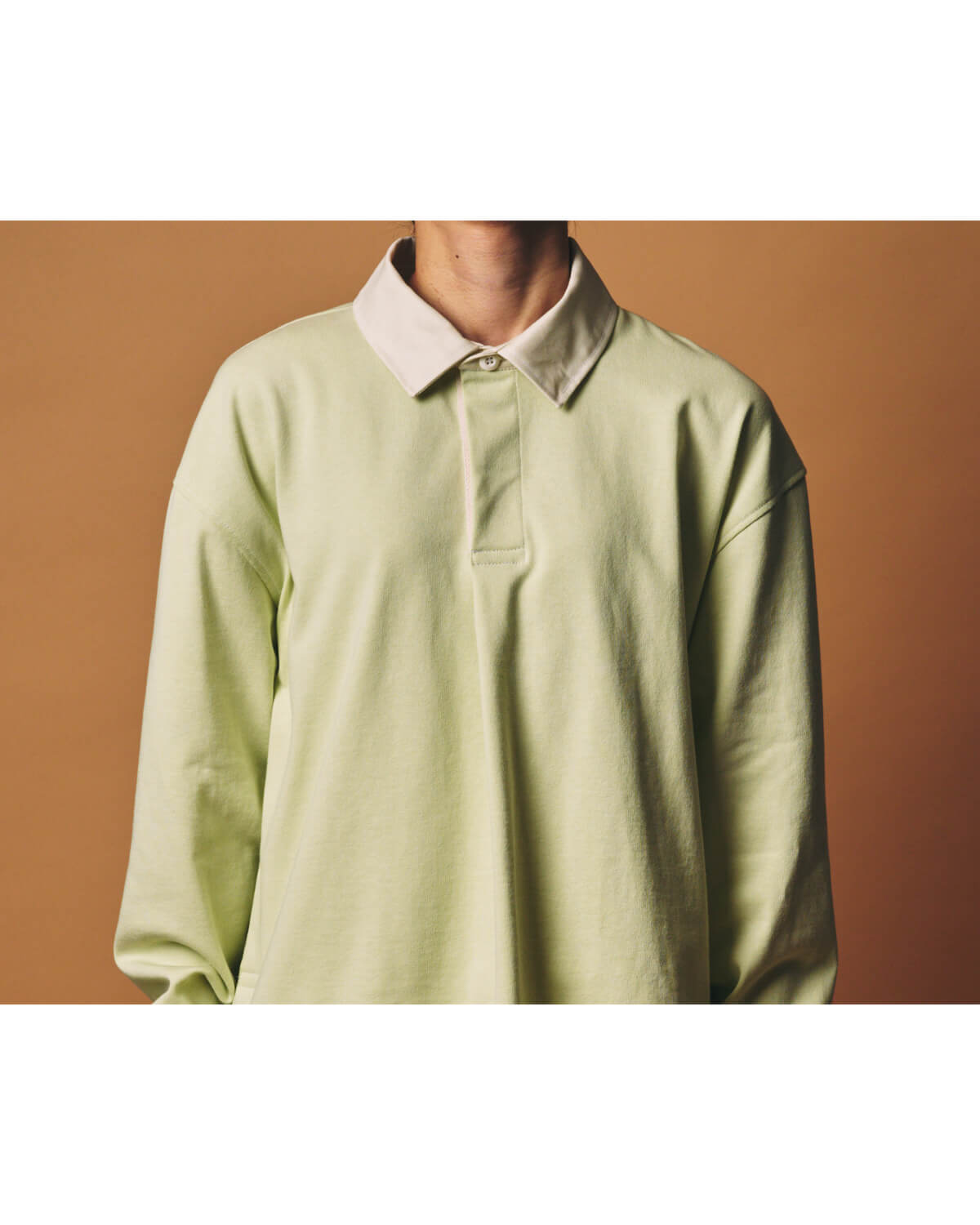 – MADE IN JAPAN– イギリスでラグビーが学校教育として広まっていくにつれて、各校のユニフォームとして定着したラガーシャツは、激しいプレーに耐えられるよう、前立ての補強やラバーボタン、エルボーパッチなどのディテールが施され、スポーツウェアとして発展してきました。 国や年代によって前立ての仕様やボタンの数が異なるのも、ラガーシャツの奥深い魅力のひとつです。 そんな歴史あるラガーシャツをベースに、全体のバランスやディテールを見直し、m.u ならではの視点でデザインしました。 全体のサイズ感はコンパクトに設計しながらも、第一ボタンを閉めたときに首まわりに程よいゆとりが生まれるよう、襟の大きさや首との距離感を細かく調整。 コンパクトなボディと、少しゆとりのある首まわりのバランスが、着心地の良さと自然な抜け感を生み出します。 身頃の生地には、糸を引き揃え、度詰めで編み立てた天竺素材を使用。 ドライタッチと程よい肉感が特徴で、着用と洗濯を繰り返すことで風合いが増し、メンズ・レディース問わず長く愛用していただける素材となっています。 今回はあえて定番のボーダーではなく無地を選び、より日常に馴染むシンプルさと洗練された印象を目指しました。 前立てとサイドスリットの裏側には、ラガーシャツの象徴的なディテールでもある綾織りテープを配置。 激しいプレーによる引っ張りや裂けを防ぐための補強として生まれた仕様で、スポーツウェアとしての機能美をディテールとして残しています。 襟と前立て、サイドスリットの内側には白系の配色を施し、動いたときにさりげなく見えるコントラストが、このアイテムならではの表情を生みだします。 前立てのボタン下にはタックを入れ、前身頃にわずかなニュアンスをプラスしました。 着丈は前をやや短く、後ろを長めに設定。 両サイドのスリットによって動きが生まれ、タックイン・アウトどちらでもバランス良く着用していただけます。 また、ボタンはラガーシャツ特有のラバーボタンではなく、滑りが良く着脱しやすいものを選び、日常着としてのストレスのない着心地を重視しました。 カラーは Black / Ash / Lime の3色展開。 Black と Limeには Off White、Ash には White の配色を組み合わせ、それぞれのカラーに合わせて落ち着いたトーンのコントラストに仕上げています。 クラシックなルーツを持ちながら、日常着としての着やすさとバランスを追求した一枚となっています。