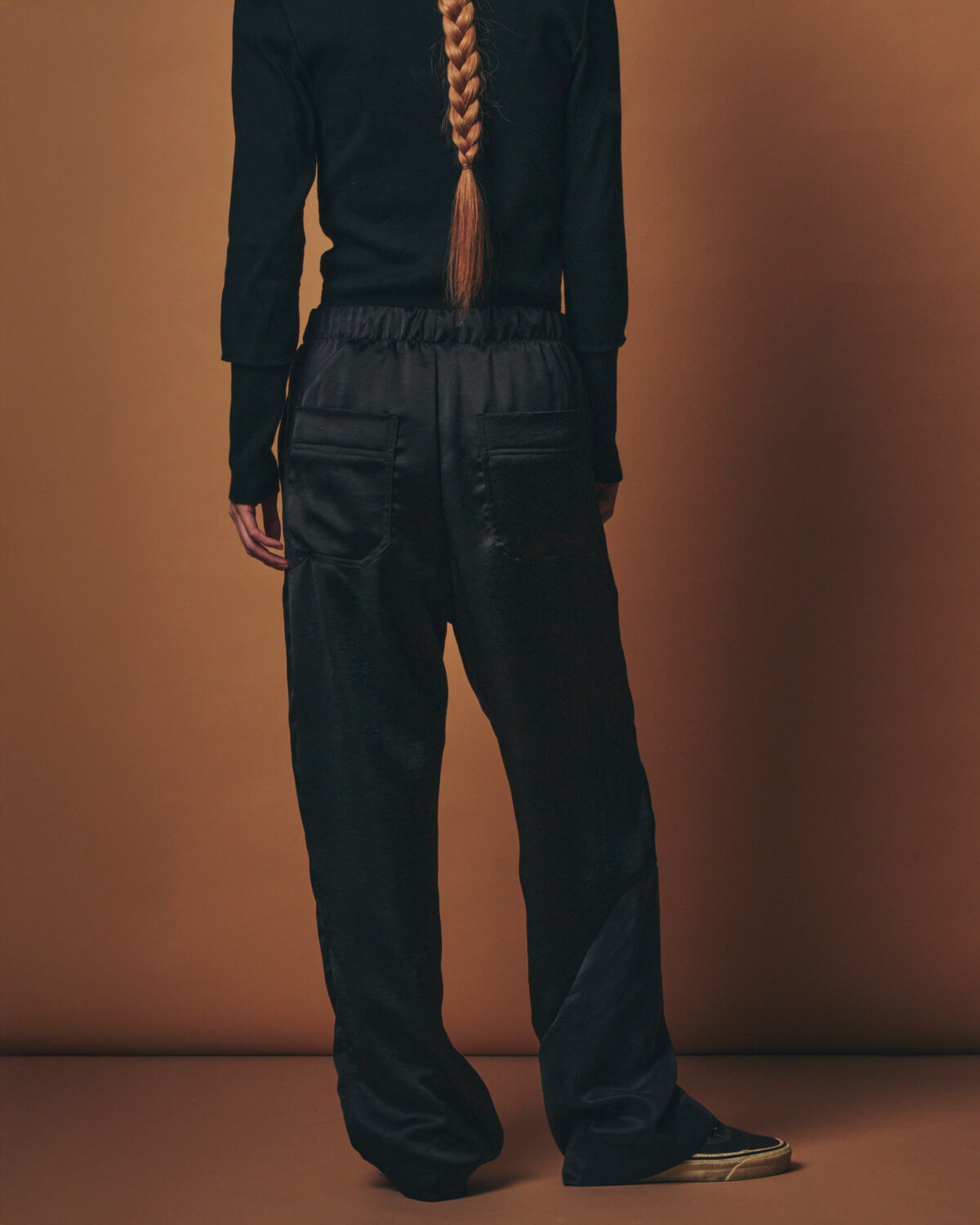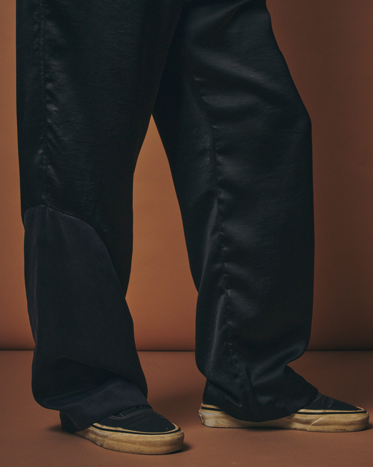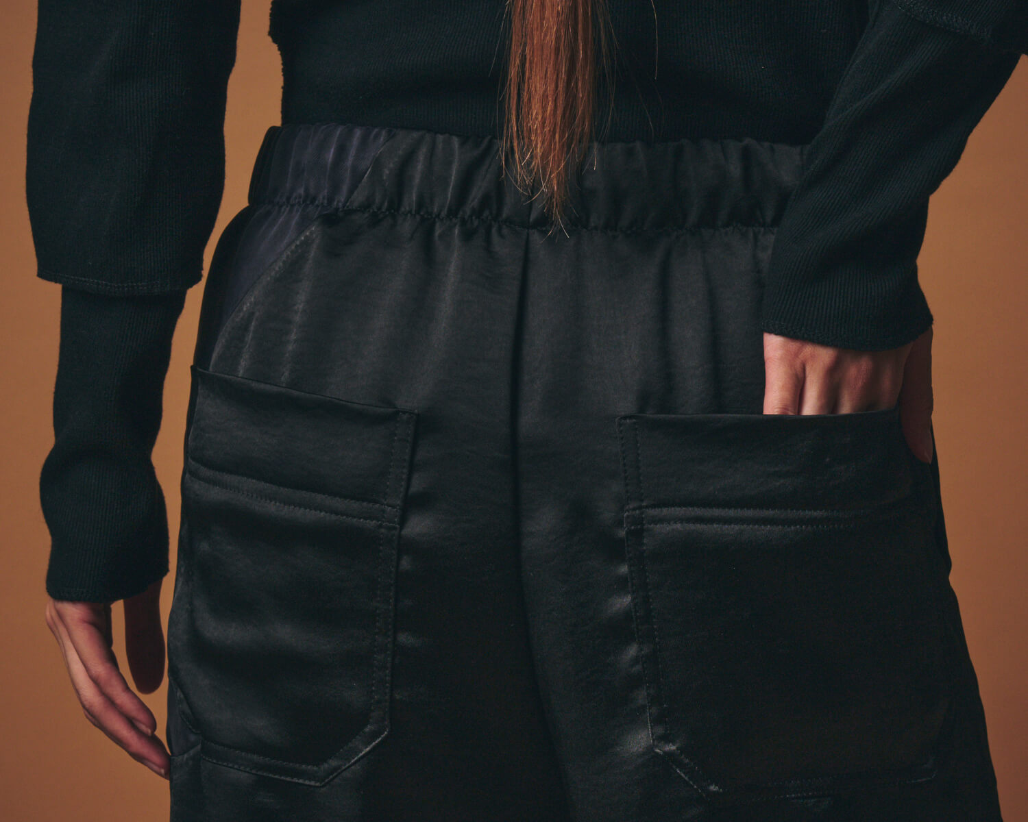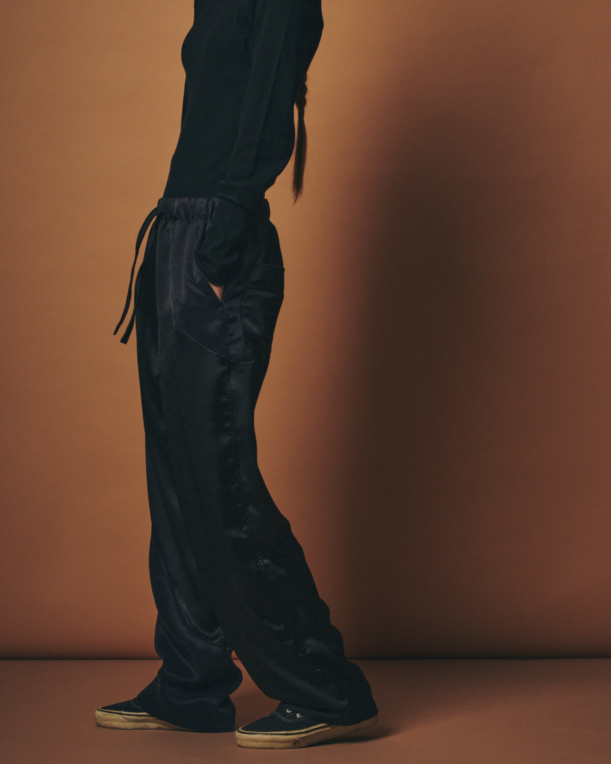 – ほかの通常商品を同時にご注文頂きますと受注生産品のご用意が出来次第の同時発送となりますのでご注意ください。m.u Silky Satin Pants
