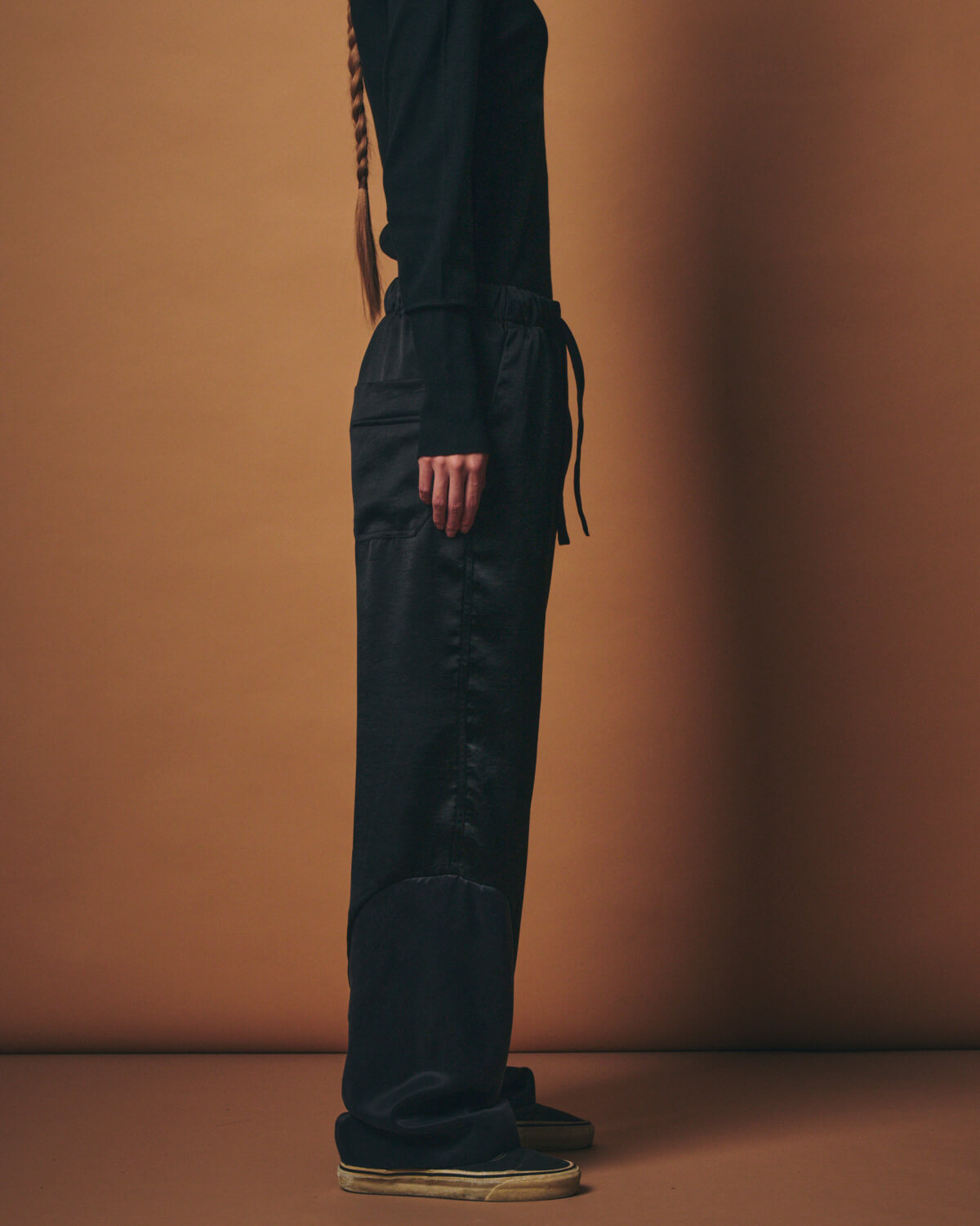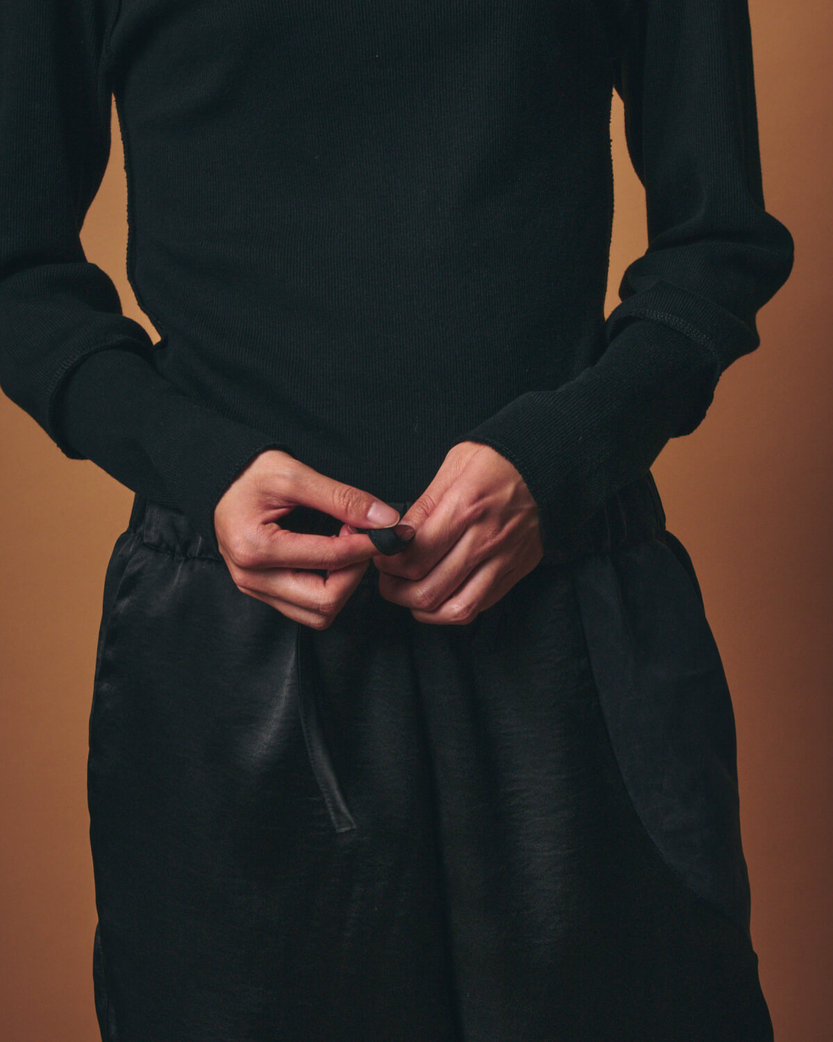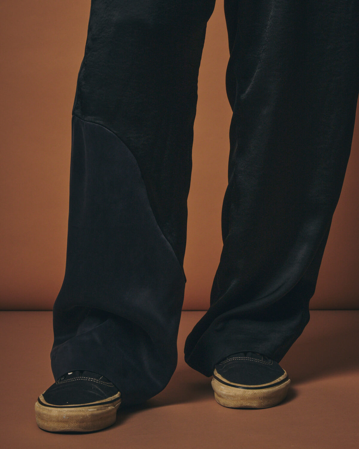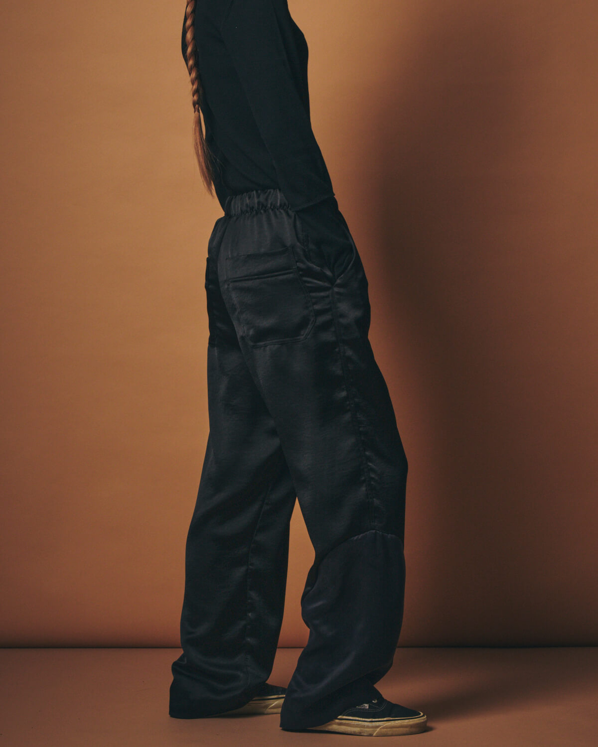 – ほかの通常商品を同時にご注文頂きますと受注生産品のご用意が出来次第の同時発送となりますのでご注意ください。m.u Silky Satin Pants