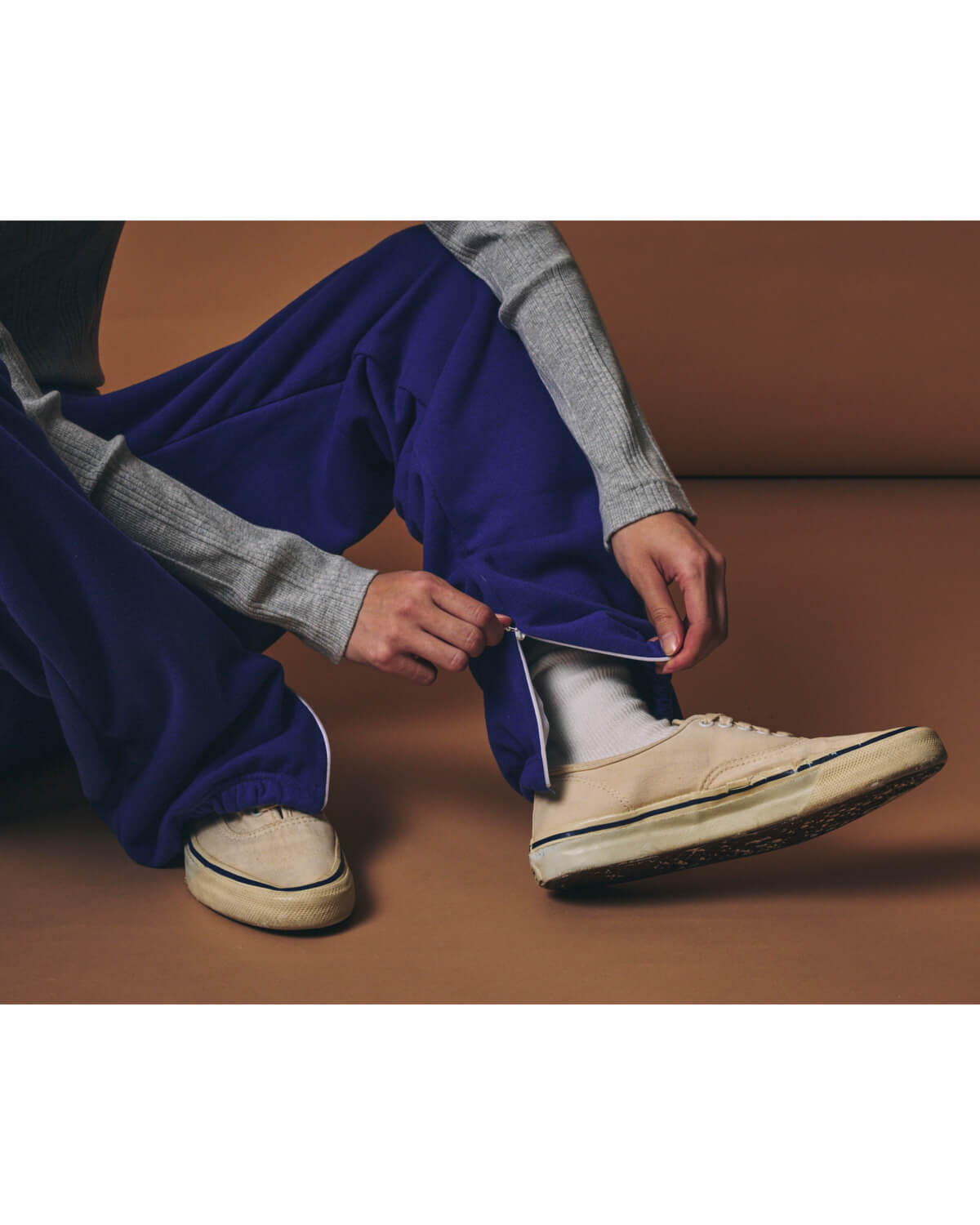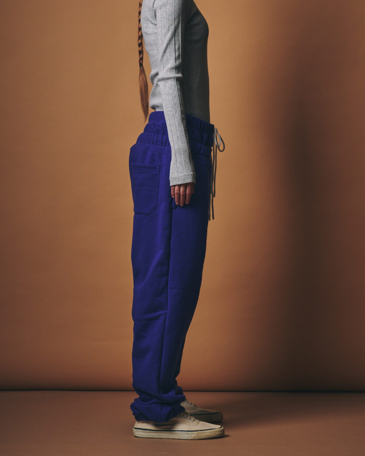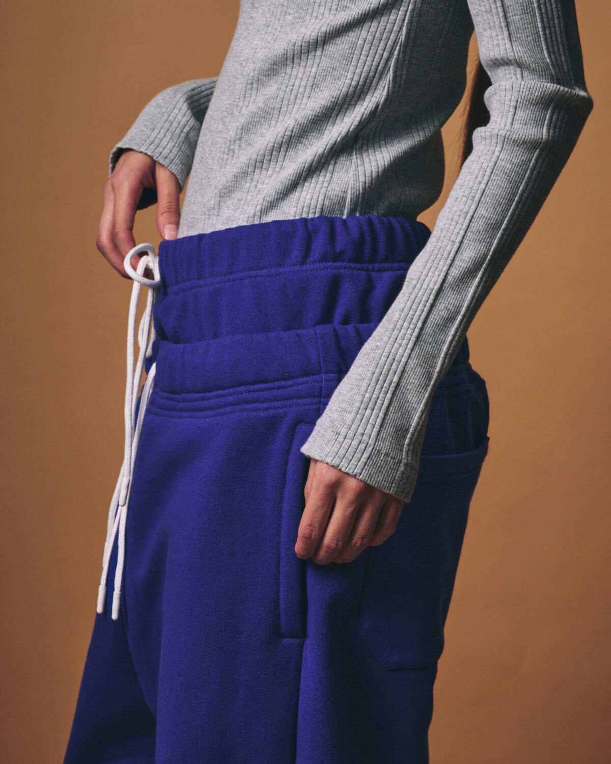 – MADE IN JAPAN– 紡績から編み、加工に至るまで、すべてを日本国内で行ったコットン100%の裏毛素材を使用した[m.u W WAIST Sweat Pants]。 表糸には、熟成させたコットン原料を特殊な機械で紡績した糸を使用し、ヴィンテージライクな表情と、さらりとした独特のドライタッチを実現しています。 さらに、染色整理工程では高温スチーム機で蒸しながらセット工程を施すことで、裏毛素材でありながら、ふっくらとした膨らみと奥行きのある風合いに仕上げました。 環境負荷を軽減する「BRING OUT ECO+®」加工を施している点も、この素材ならではの魅力です。 デザインの着想源は、以前リリースした[m.u × PRE_ W WAIST Work Pants]。 ダブルウエストという特徴的なディテールを、スウェットパンツという新たなアイテムへと落とし込み、まるで同じパンツを重ねて穿いているかのような、レイヤード風のダブルウエストデザインに仕上げました。 二重になったウエスト部分は、距離感や重なり具合にまで細かくこだわり、自然な立体感と安心感のある穿き心地を実現。 それぞれのウエストには白のコードを配し、どちらでもサイズ調整が可能です。 タックインした際もバランスよく、簡単にスタイリングが決まるのも嬉しいポイント。 シルエットは、ゆったりとしながらもワイドすぎない絶妙なラインに。 裾にはゴムを配しつつ、内側にファスナーを設けることで、シューズに合わせてシルエットの変化を楽しめる仕様としました。 ボリューム感のある裾が、動くたびに表情豊かなラインを生み出します。 両サイドのポケットはもちろん、ヒップポケットは実用性を考慮した2ポケット仕様。 シンプルな中に、細かな工夫とこだわりを詰め込んだ1本となっています。 カラーは、選び抜いた Black / Ash / Royal Blue の3色展開。 一見ありそうで、実はなかなか見つからないダブルウエストのスウェットパンツを、m.uならではの視点でデザインしました。 主張しすぎずに印象に残る。 日常に自然となじみ、長く愛用していただけるスウェットパンツとなっています。