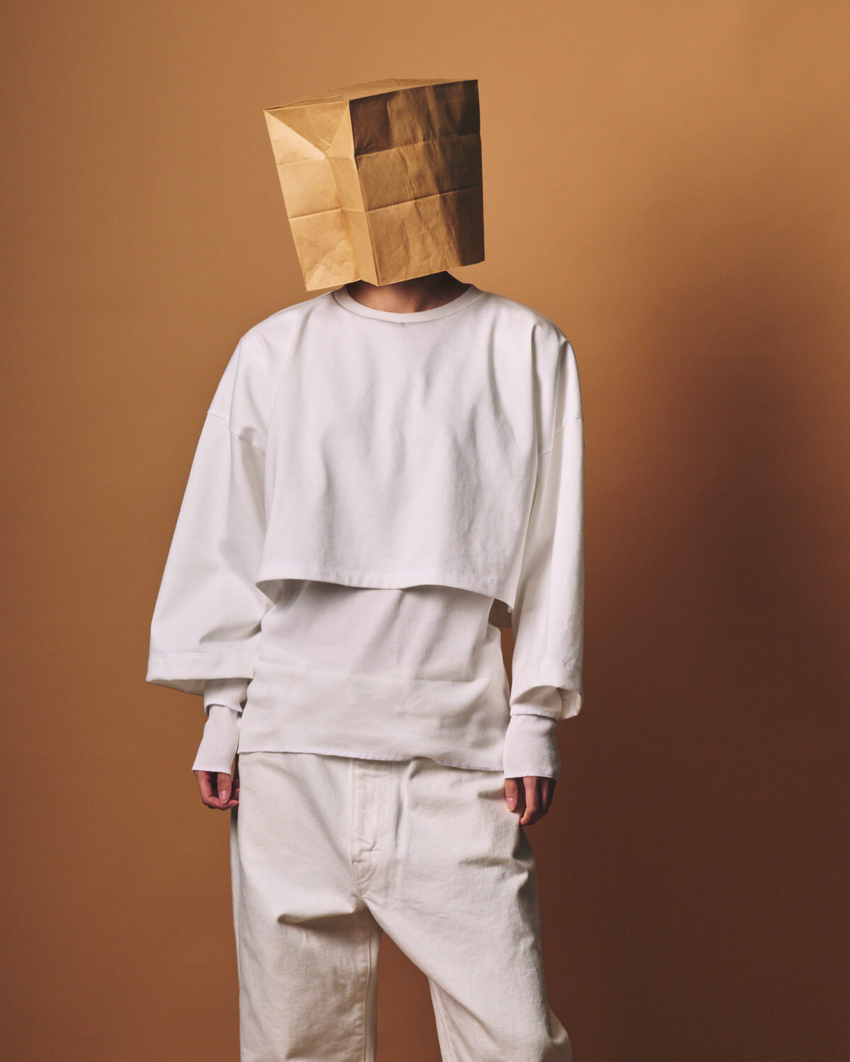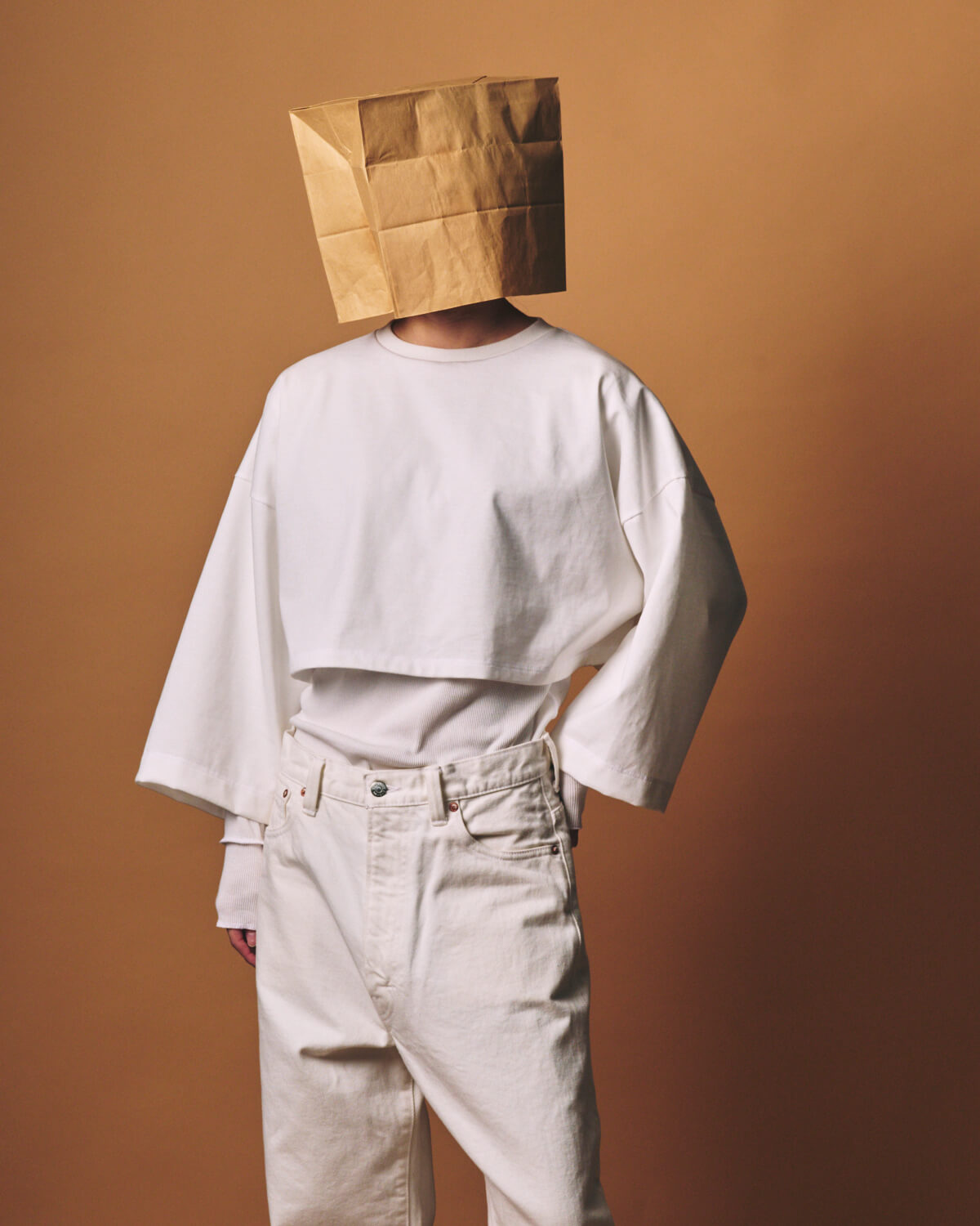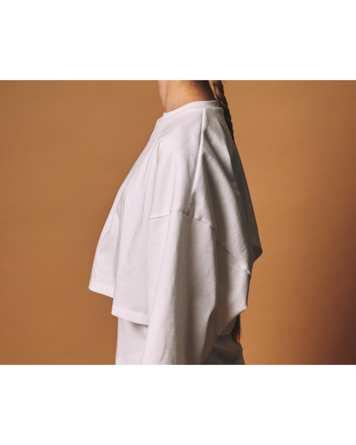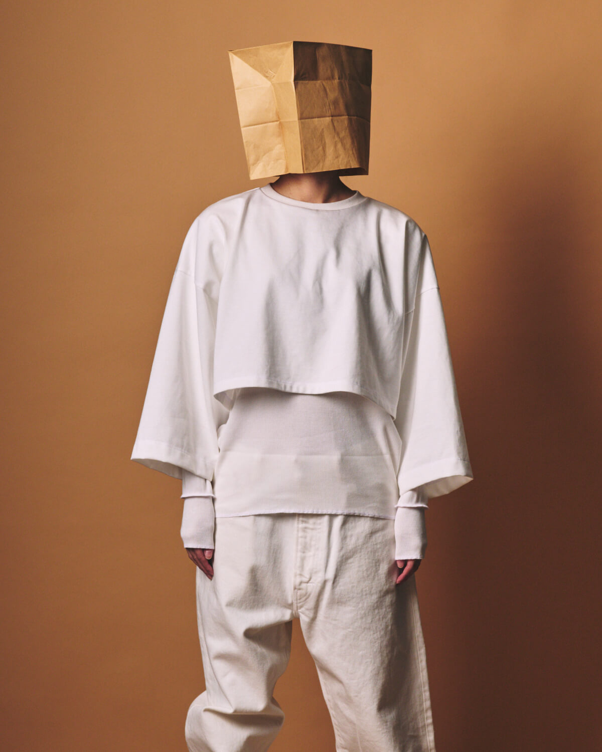– MADE IN JAPAN– [PRE_ CROP LAYERED LS]をベースに、生地と全体のバランスを見直し再構築した[m.u × PRE_ CROP LAYERED RIB LS]。 襟ぐりのみを縫い合わせたレイヤードプルオーバーとなっており、異なる質感とシルエットを持つ2枚のトップスをひとつの形として設計しました。 インナーには、ORGANIC FIELD® を使用したテレコ素材を採用。 繊維長の長い糸によるソフトなタッチと整った目面が特長で、程よい肉感のためシーズンレスにご着用いただくことが可能です。 インナーのフォルムは[m.u RIB L/S]をベースに、身体に沿いすぎない絶妙なフィット感に仕上げました。 上から重ねたトップスには、ヘビーウェイトな糸を度詰めで編み立てた天竺素材の生地を使用しており、パキッとしたハリとコシのある生地感が特徴です。 しっかりとした質感のトップスと柔らかなリブインナー。 対照的な素材同士が重なることで、奥行きのあるバランスを生み出します。 着丈と身幅は前後でパターンを変更。 インナーは前をやや短く、後ろを長めに設定しており、トップスは前裾をフラットに、後ろは短めのカーブラインに仕上げました。 また、幅広の8分丈スリーブが、袖口から覗くリブとのコントラストをより際立たせくれています。 カラーは Black / White / Grey の3色展開。 クロップド丈でありながら、二重構造のレイヤードが全体のバランスを自然に整えてくれるため、タックイン、アウト、どちらも美しく決めてくれる、スタイリングの幅を広げるアイテムとなっています。