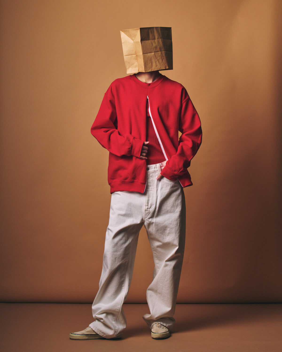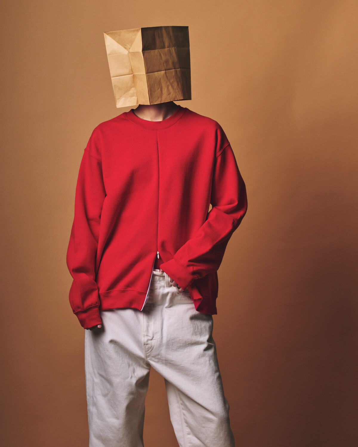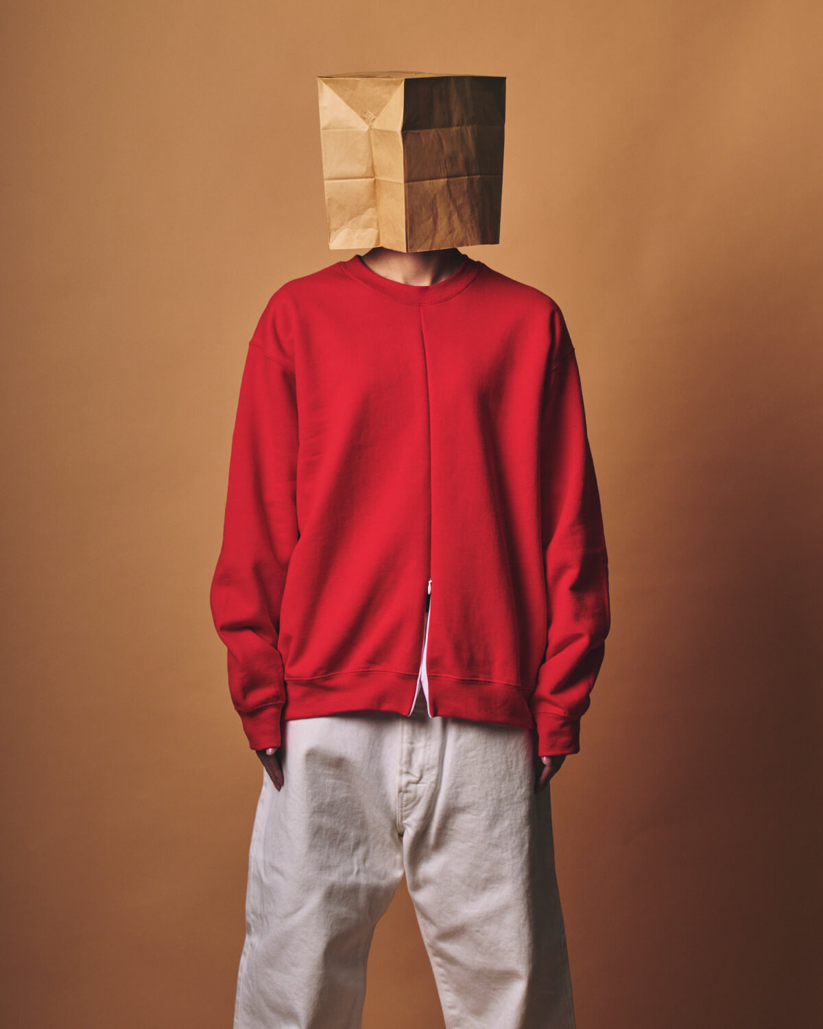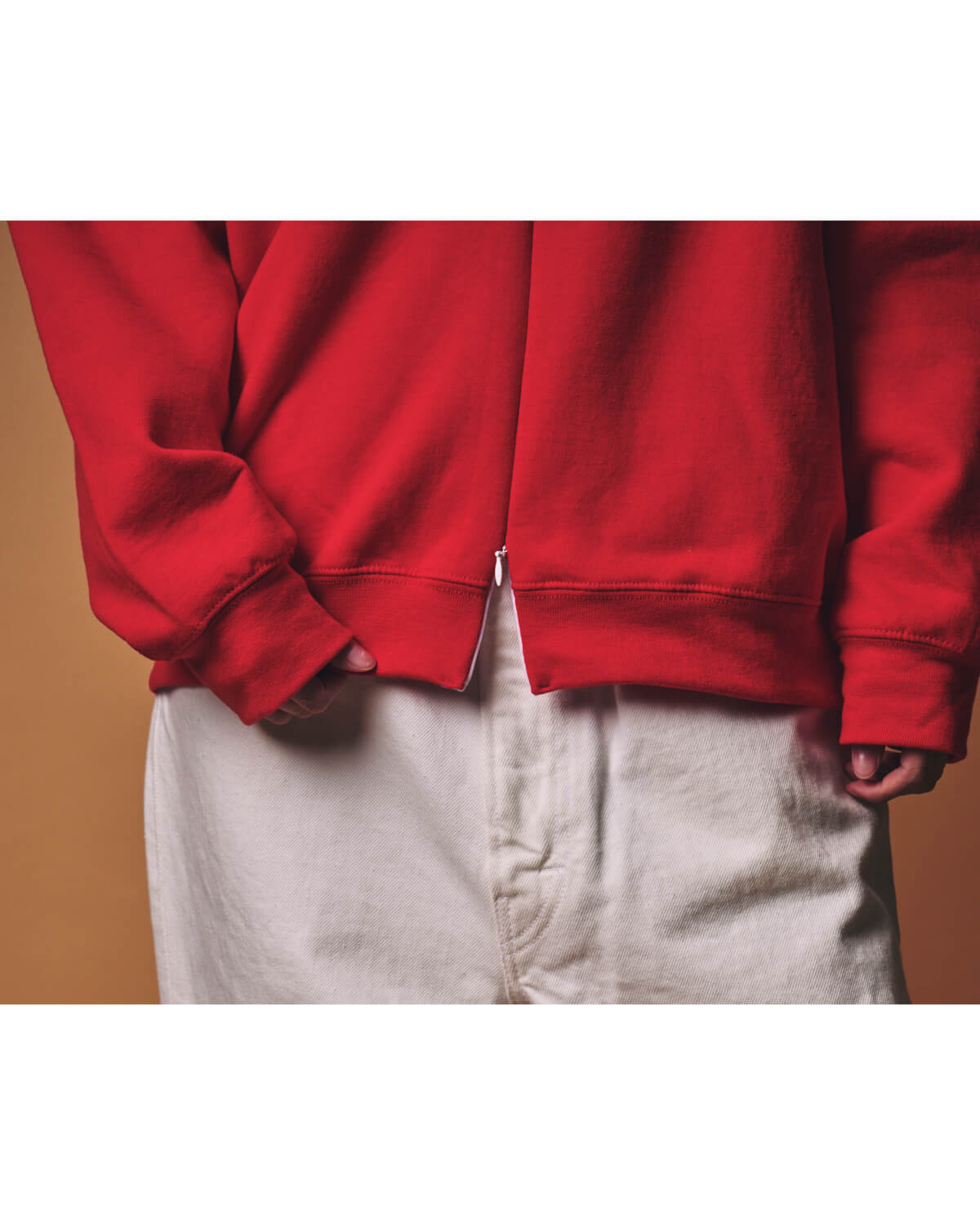 – REMADE IN JAPAN– 多くの方に愛され、着倒されながら時を重ねてきた、PRE_の名作スウェット[PRE_ F&B OPEN SWEAT]。 「また着たい」「もう一度出会いたい」という数多くのお客様の想いに応えるかたちで、待望の復活となりました。 今回の復活では、m.uのこだわりとして、ファスナーカラーをボディーカラーとはあえて異なる別カラーで仕上げ、閉じている状態では主張しすぎず、開けたときにだけ感じる遊び心をプラスしています。 Black、Red の body には White zipper、Gray body には Black zipperを組み合わせました。 フロントとバック中央にそれぞれ配置したファスナーは、開閉によって表情が大きく変わり、インナーを覗かせたり、レイヤードを楽しんだりと、スタイリングの幅を広げてくれます。 季節や気分に合わせてファスナーの開き具合を調整できるのも、嬉しいポイントです。 シルエットは当時の魅力を活かしつつ、サイズ展開にもこだわりました。 これまで主流だった大きめを着たゆったりとしたシルエットから、最近ではややコンパクトなサイズ感へと、トレンドが少しずつ移り変わってきています。 その変化を踏まえ、あえて一つの正解に絞ることなく、それぞれのスタイリングやバランスに合わせてお選びいただけるサイズ展開としました。 一枚でさらっと着るのはもちろん、コンパクトに着てボトムスとのバランスを楽しんだり、あえてゆとりのあるサイズを選び、インナーとのレイヤードで遊んだりと、気分やスタイルに合わせた着こなしをお楽しみいただけます。 シンプルでありながらも確かな存在感を放つ、特別なスウェットに仕上がりました。