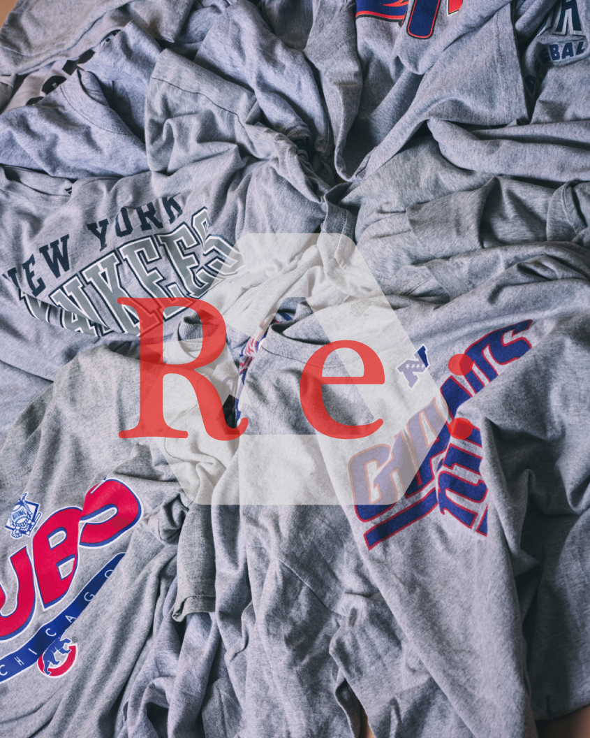 – REMADE IN JAPAN– VINTAGE T には様々なプリントデザインがあり、誰とも被らない1点もののアイテムとしてお楽しみいただけるという反面、ダメージや色あせ、シミなど、古着自体のコンディションによってはそのままでは着用しづらい状態のものも数多く存在しています。 プリントやデザインがとても良く、雰囲気あるTシャツなのにも関わらず、着用出来ないのはもったいない。 廃棄することなく、形を変えながらでも良きものを残していきたいという思いから、今回、m.u が様々な状態の VINTAGE T をリユースし、新しいアイテムとして生まれ変わらせた[m.u Reuse OAO SWEAT]を発売いたします。 新品スウェットの前身頃には、VINTAGE T をくり抜いて作ったリサイクルマーク型ワッペンを刺繍で縫い付けました。 ダメージのある箇所をよけながらオリジナルのリサイクルマーク型にくり抜き、ウレタンを挟み込むことで作り上げられた立体的でぷっくりとしたワッペンは、まるでスタジャンのワッペンを彷彿とさせるような仕上がりとなっています。 リサイクルマークの下には m.u オリジナルのボックスロゴを刺繍しており、左手の袖先の外側にはブランドロゴ[m.u]の刺繍を施しました。 裾のリブは一度切り離し、着丈の長さを調整しながら、横織りの目立つ肉厚の新しいリブを少しだけ絞りながら緩めに取り付けました。 [m.u Reuse OAO SWEAT]は、VINTAGE T をリユースして生まれ変わらせたOne And Only[唯一無二]のアイテムとなっています。 なお、スウェットのカラーはお選びいただけますが、ワッペンに使用したVINTAGE T のプリントをお選びいただくことはできませんので、予めご理解いただきました上でお買い求めくださいますようお願いいたします。