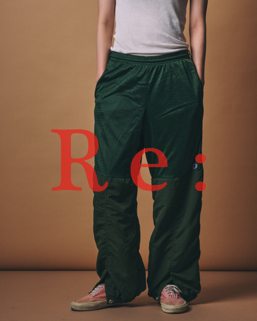 – REMADE IN USA– USA規格であるCHAMPIONのメッシュショーツをベースに柔らかいナイロン素材と組み合わせ、フルレングスのパンツへと再構築したm.u × PRE_DOCKING PANTS。 メッシュショーツを形や仕様は変更せずにナイロン生地とドッキングしました。 メッシュショーツ特有の通気性や速乾性に加え、ウエストはゴムと紐のイージー仕様となっているため履き心地は抜群です。 裾には程よく絞られたゴムが通され、前面の中央部分に入ったスリットはスナップボタンにより開閉可能な仕様に。 スナップボタンを閉め、裾に弛みをだすことでカジュアルな雰囲気でご着用いただけたり、ボタンを開き、スリットを割れば、お好みの靴に合わせてご着用いただけるなど様々な場面にて快適にご着用いただけるアイテムとなっています。 メッシュとナイロンという異素材を組み合わせたm.u × PRE_DOCKING PANTSは、軽くて肌触りも優しく柔らかい、とてもリラックスした着心地です。 なお、前回の商品で両サイドに這わせていたテープは、当商品には使用しておりませんので予めご了承ください。